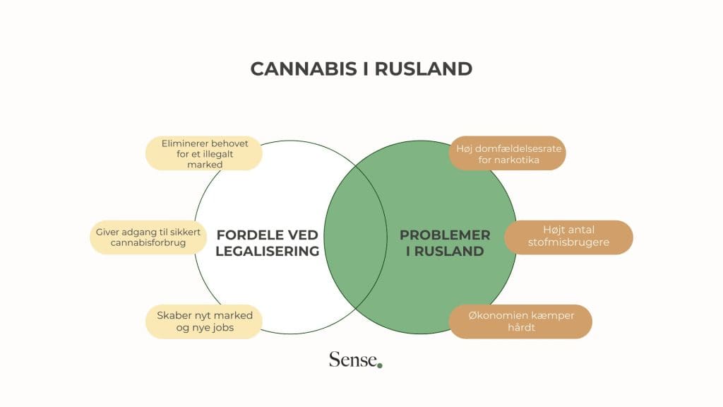 I årtier har Rusland stået over for udfordringer med at håndtere stofbrug, som har haft en dybtgående indvirkning på befolkningens sundhed og trivsel. Injektionsbrug af stoffer er f.eks. blevet sat i forbindelse med høje tal for HIV-infektion, tuberkulose, hepatitis og andre relaterede medicinske tilstande. Denne igangværende krise har formet landets tilgang til narkotikahåndhævelse og påvirket dets politik over for alle ulovlige stoffer, herunder cannabisprodukter, som fortsat er ulovlige.